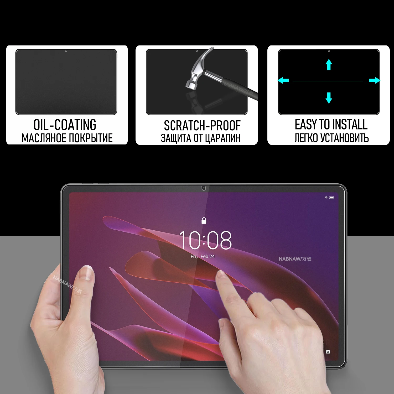 [Lista de embalaje: 2 protectores de pantalla + 2 herramientas de limpieza + 2 pegatinas para quitar el polvo.]