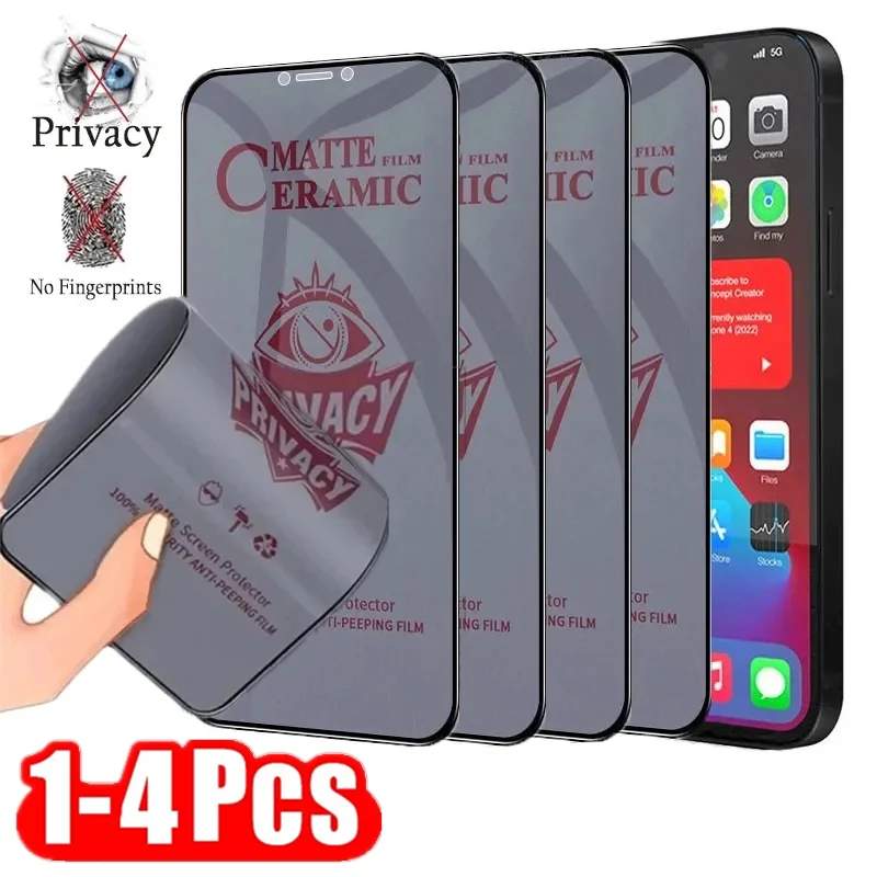Protector de pantalla de privacidad de cerámica mate para iPhone, película antiespía para iPhone 14, 13, 12, 11 Pro Max, 7, 8, 14 Plus, X, XR, XS, MAX, SE, 1-4 piezas
