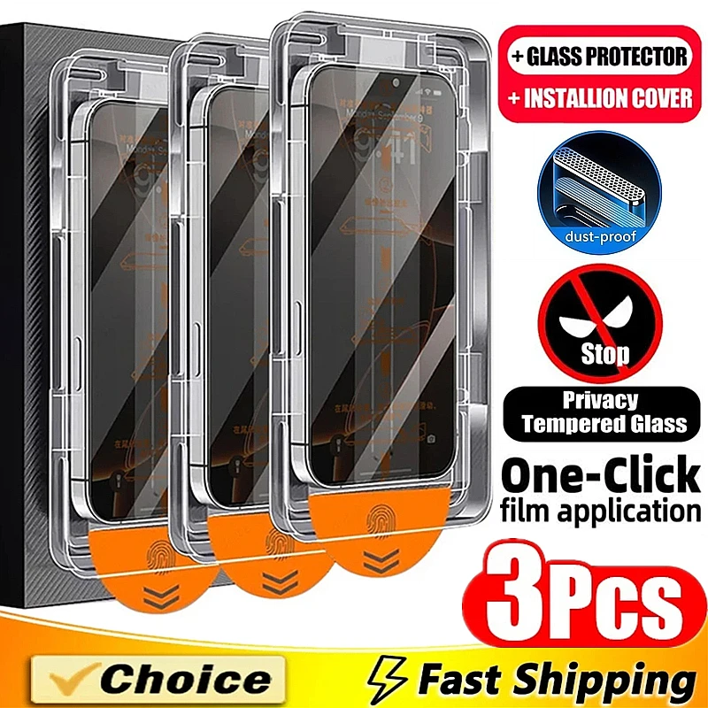 Comprar Protector de pantalla de privacidad para iPhone 16 15 14 11 12 13 17 Pro Max XR X XS 16 Plus, revestimiento oleofóbico, instalación sin polvo