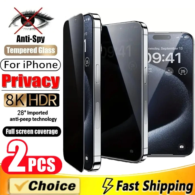 Comprar Protector de pantalla de privacidad para IPhone, vidrio antiespía para modelos 15, 14, 11, 12, 13, 16 Pro Max, 12, 13 Mini, XR, X, XS MAX, 7, 8, 15, 14, 16 Plus, SE, 2 unidades