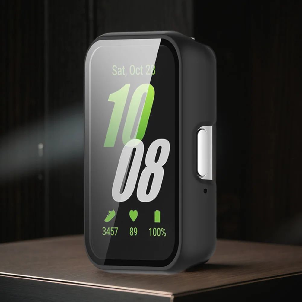 Caja de reloj de PC, anticaída, antiarañazos, cobertura completa, marco de película templada con vidrio templado para Samsung Galaxy Fit 3 SM-R390
