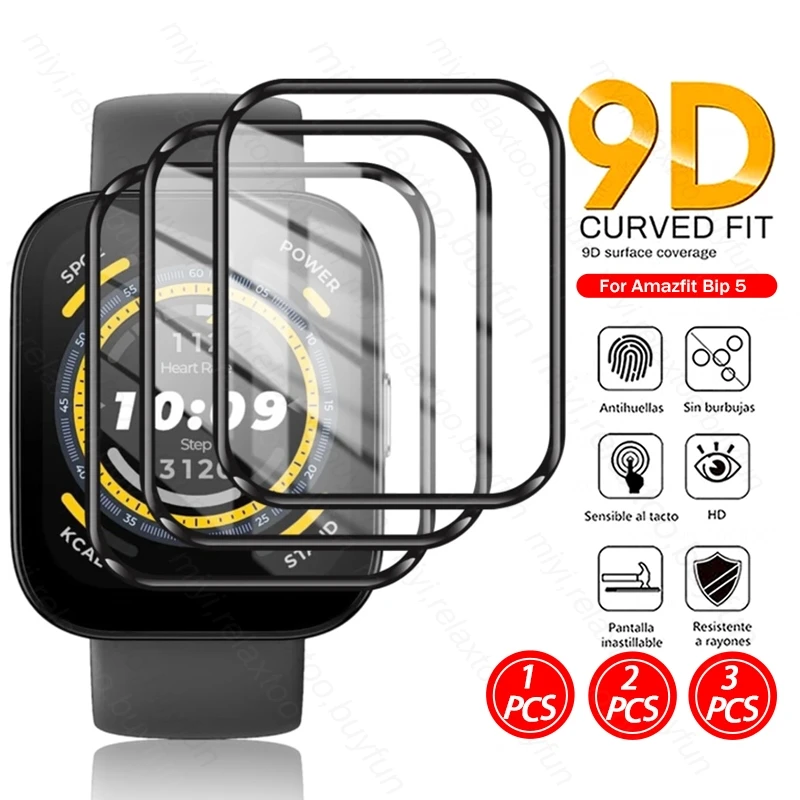Comprar Protector de pantalla para reloj inteligente Amazfit Bip 5 Bip5, cristal suave curvo 9D de 1 a 3 piezas, película protectora de 1,91 pulgadas