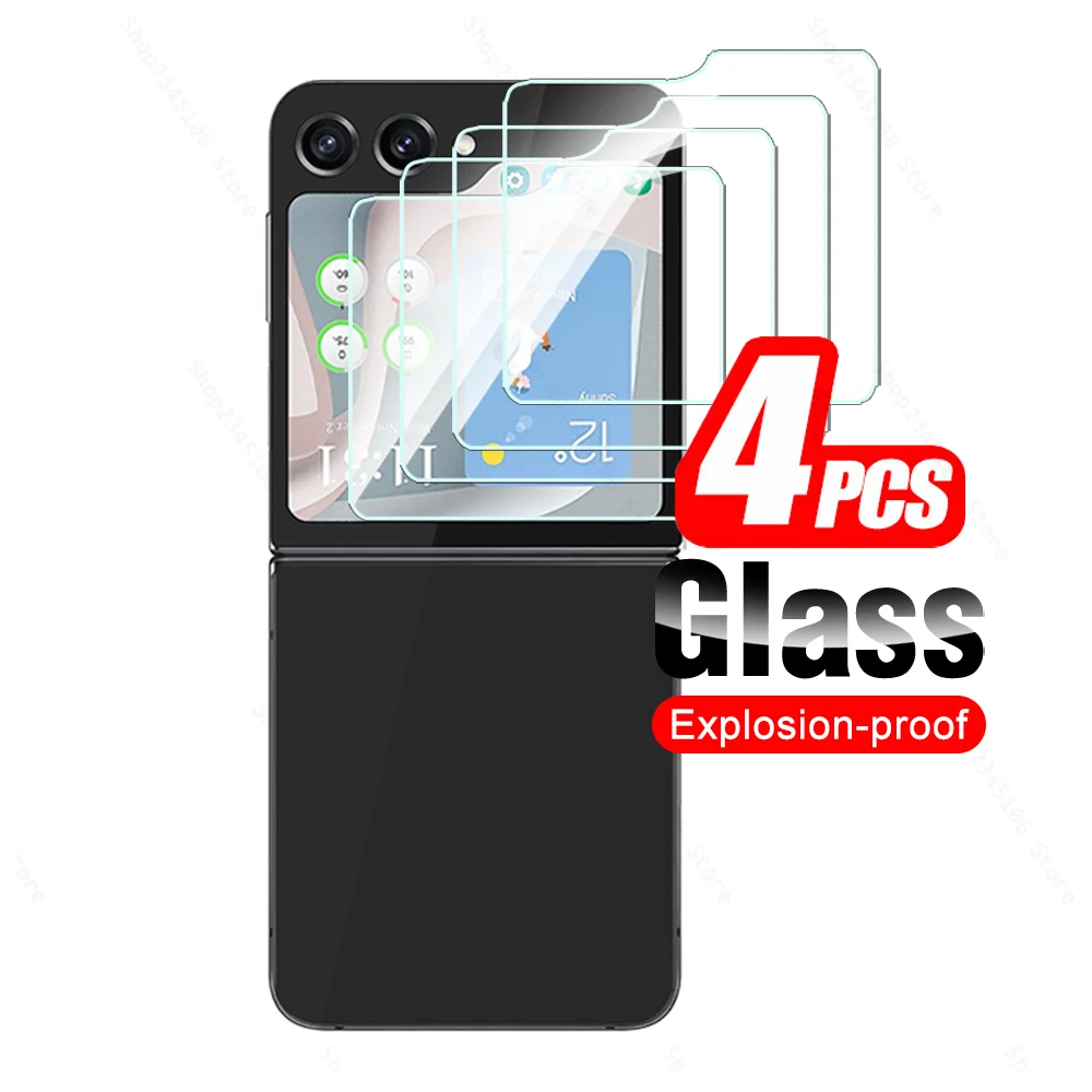 Para Samsung Galaxy Z Flip5 5G Vidrio trasero 4 piezas Vidrio templado protector ZFlip5 Flip 5 ZFlip 5 SamsungZFlip5 HD Protector de pantalla