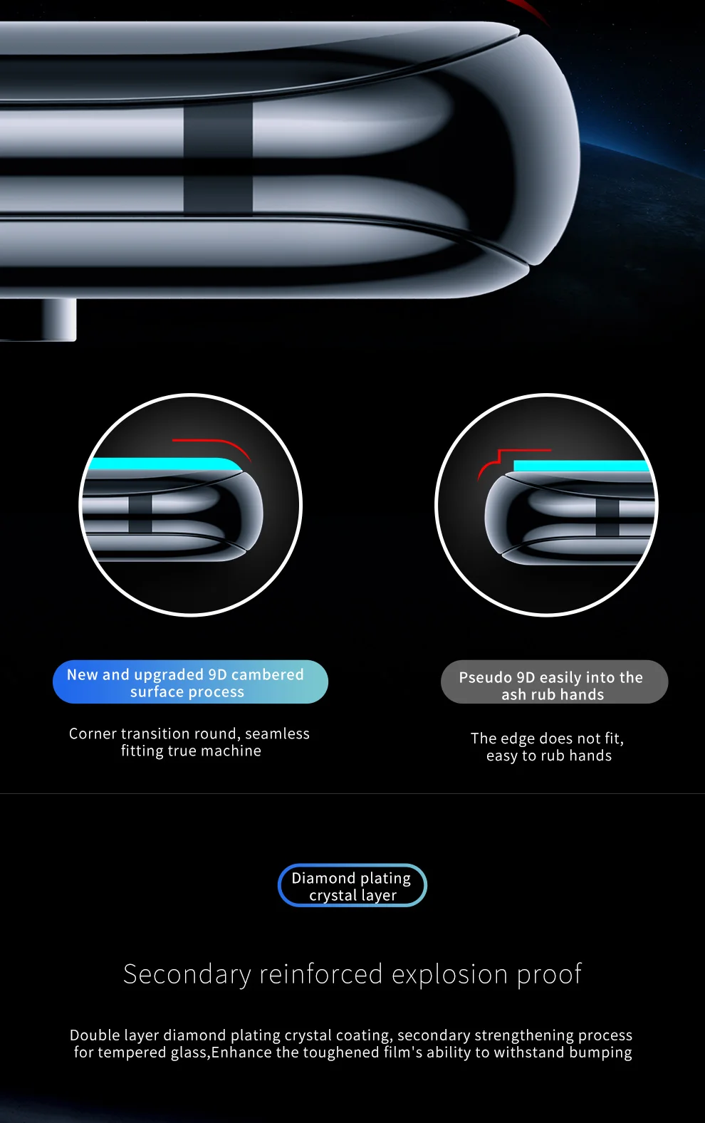 7.100% Cobertura 9H Pantalla completa Vidrio templado