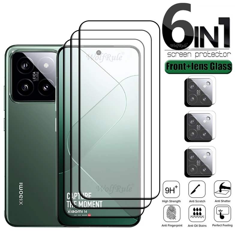 Comprar Protector de pantalla de teléfono 6 en 1 para Xiaomi 14, cristal 9H HD, pegamento de cubierta completa, para Xiaomi Mi 13T Pro 13 14