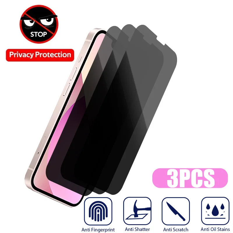Comprar Protector de pantalla de vidrio antiespía para iPhone, película privada mini para iPhone 14, 13, 12, 11 Pro, XS MAX, 11, X, XR, 7, 8 PLUS, 13, 3 uds.