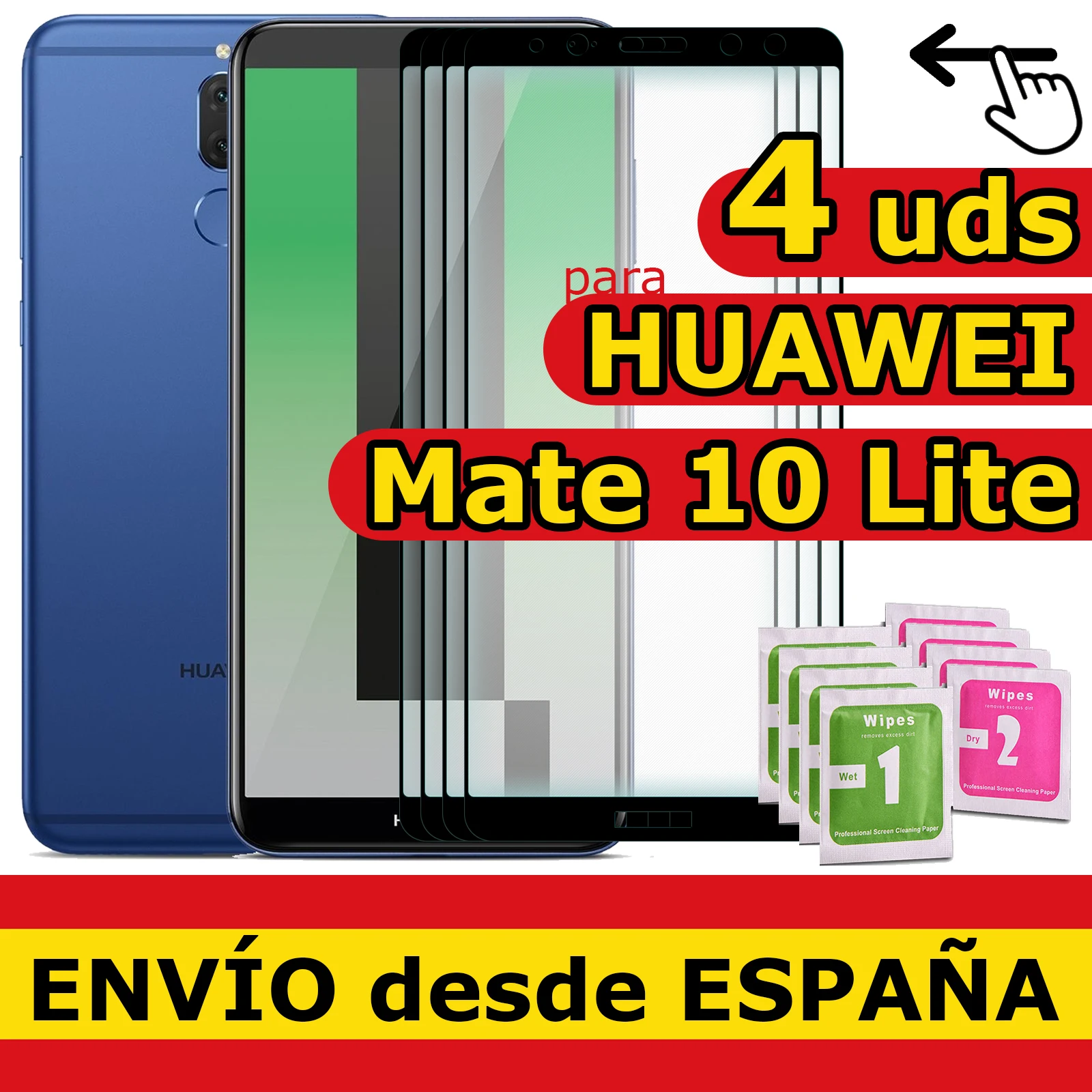 Comprar Protector Pantalla Vidrio Cristal Templado Para HUAWEI MATE 10 LITE NEGRO Frontal Completo Calidad Premium 9H 0.33mm 4 Unidades