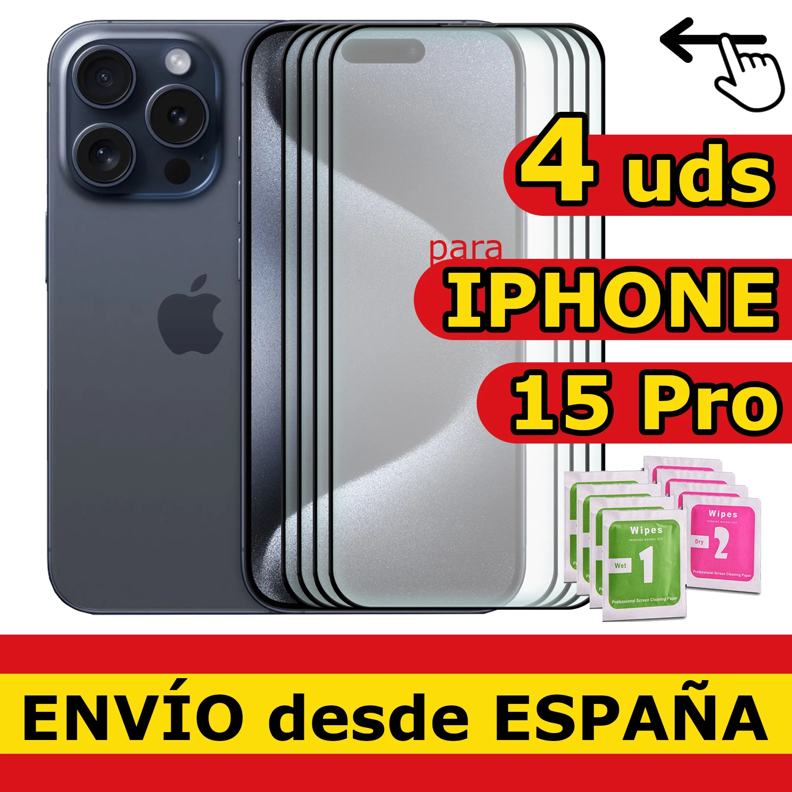 Comprar Protector Pantalla Vidrio Cristal Templado Para IPHONE 15 PRO NEGRO Frontal Completo Calidad Premium 9H 0.33mm 4 Unidades