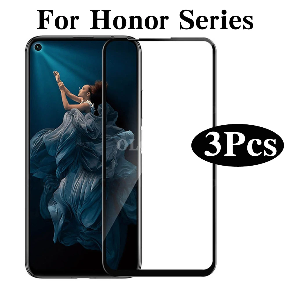 Comprar Protector de pantalla de vidrio para Honor, cubierta de cobertura completa 9D, 10, 20, 30, 10x Lite, V30, V20, V10, V9, X10 Pro Max, 3 unidades