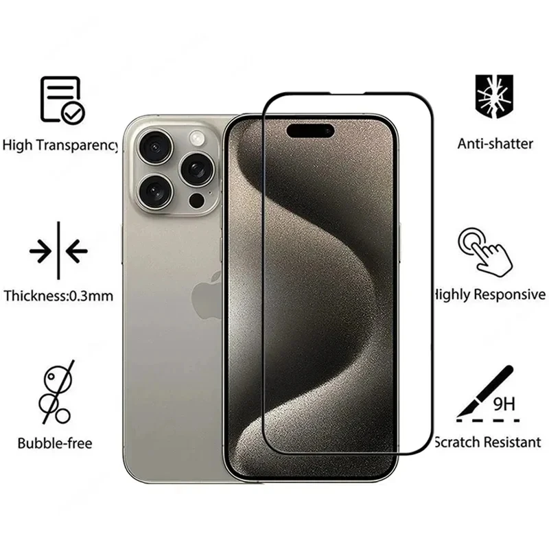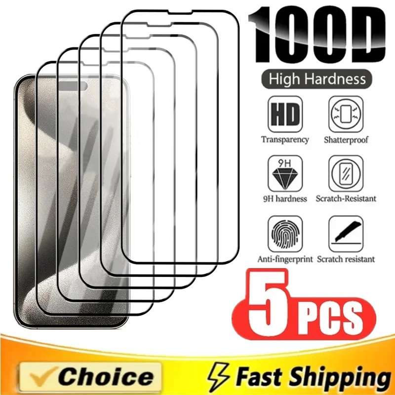 Comprar Protector de pantalla de vidrio para iPhone, cubierta completa para modelos 15, 11, 12, 13, 14 Pro Max, Mini, 7 Plus, XS MAX, X, XR, SE, 5 unidades