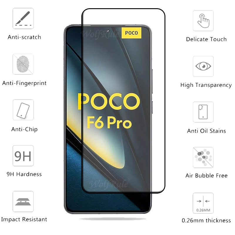 Comprar Protector de pantalla de vidrio para Poco F6 Pro, pegamento de cubierta completa, 9H, para Xiaomi Poco F5, F4, F3, X3, X4, X5, X6, F6 Pro, 2/4 unidades