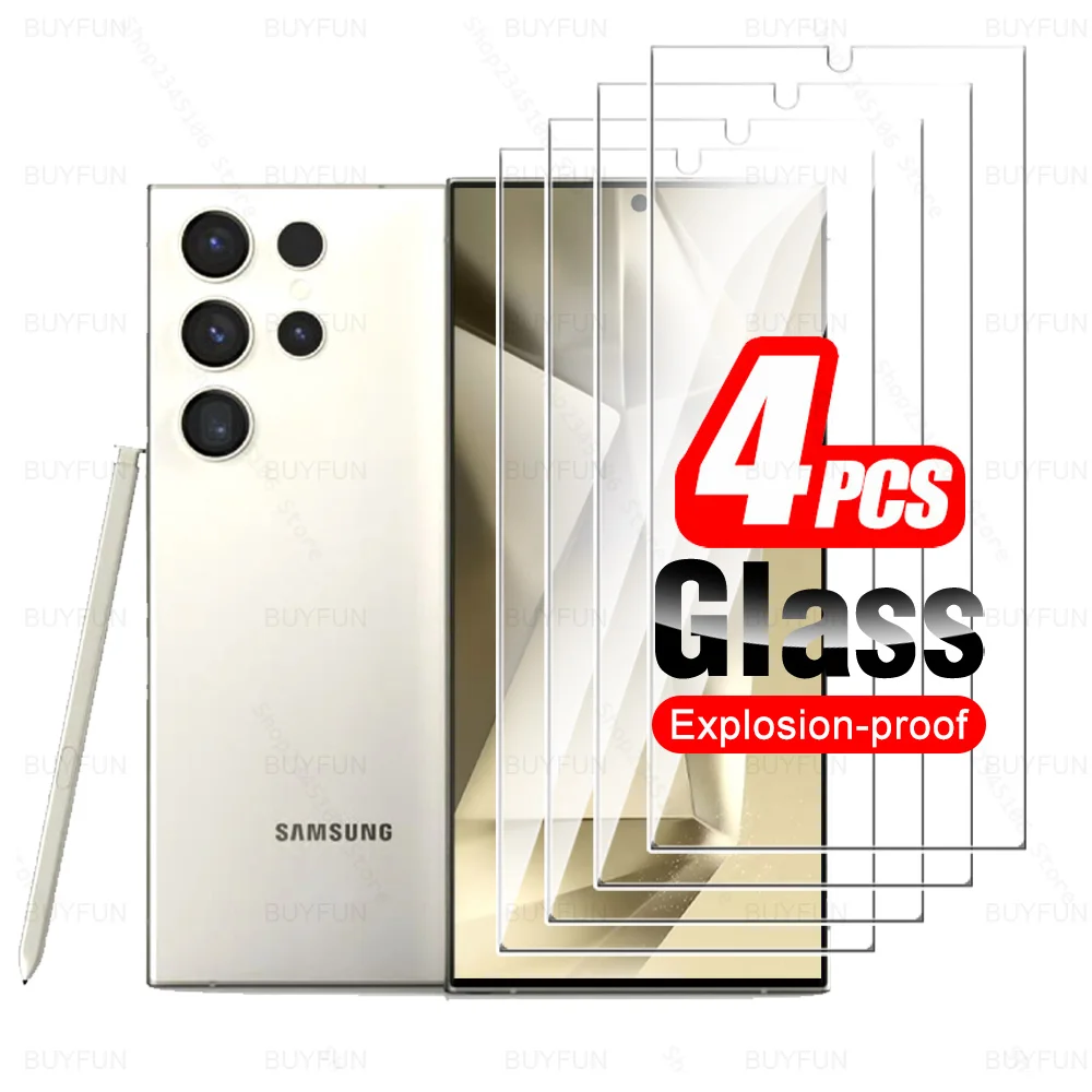 S24Ultra Glass 4 piezas para Samsung Galaxy S24 Ultra Protector de pantalla S24 + S23 + 5G S23 S22 Plus S21 S20 FE 4G películas protectoras de vidrio