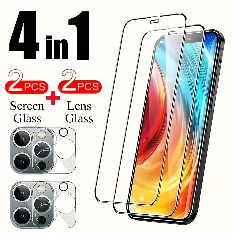 Comprar Protector de pantalla de vidrio templado de 2 uds con 2 uds Protector de lente de cámara para IPhone 11 12 13 14 15 16 17 Pro Max 16e 17Air Glass