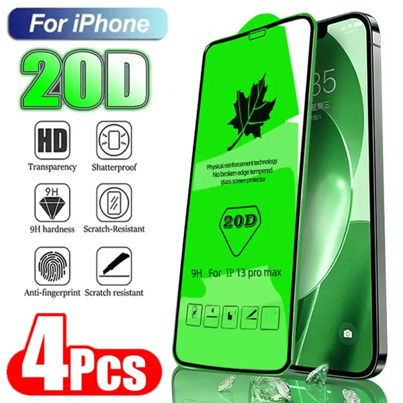 Comprar Protector de pantalla de vidrio templado 20D, Protector de pantalla para iPhone 12, 13, 14, 15 Pro Max, Mini, 8 Plus, 11 PRO, XR, XS MAX, 4 unidades