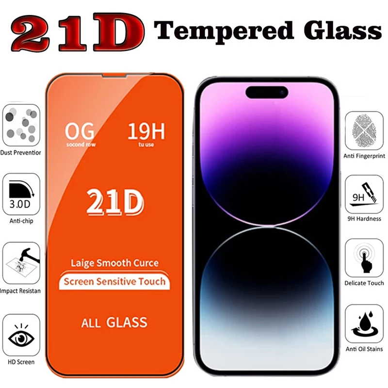 Comprar Protector de pantalla de vidrio templado 21D, cubierta completa para IPhone 11, 12, 13, 14 Pro Max, Mini, XS MAX, X, XR, 7, 8 Plus, SE, 4 unidades