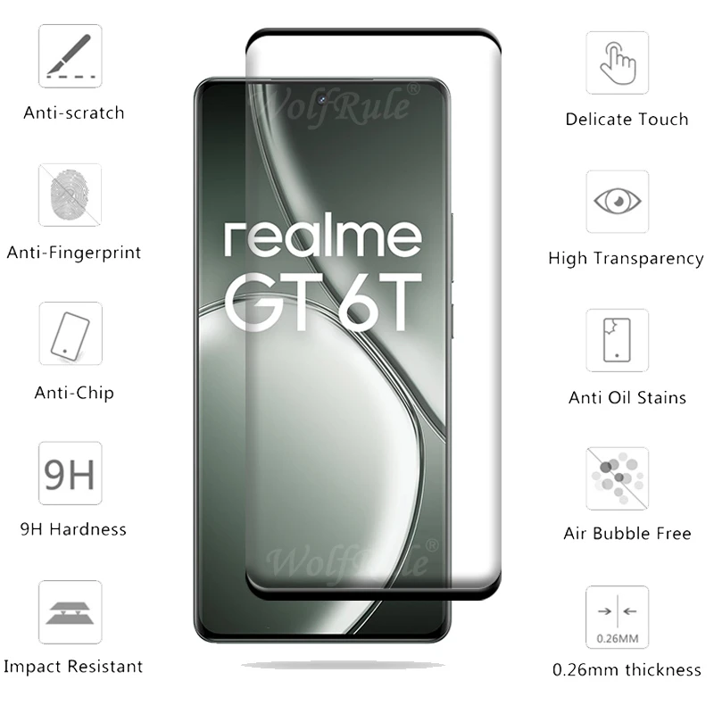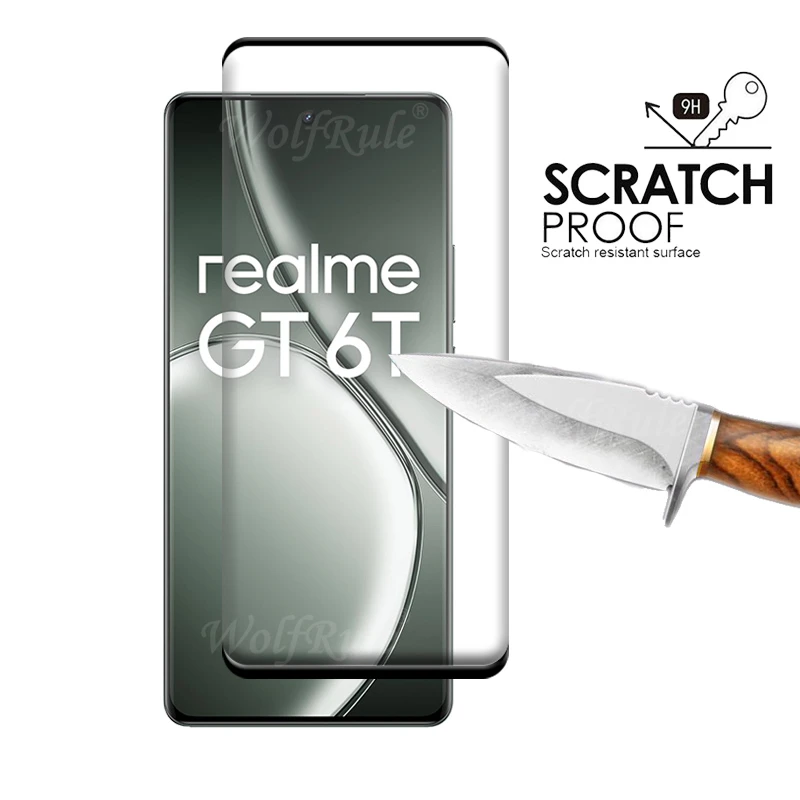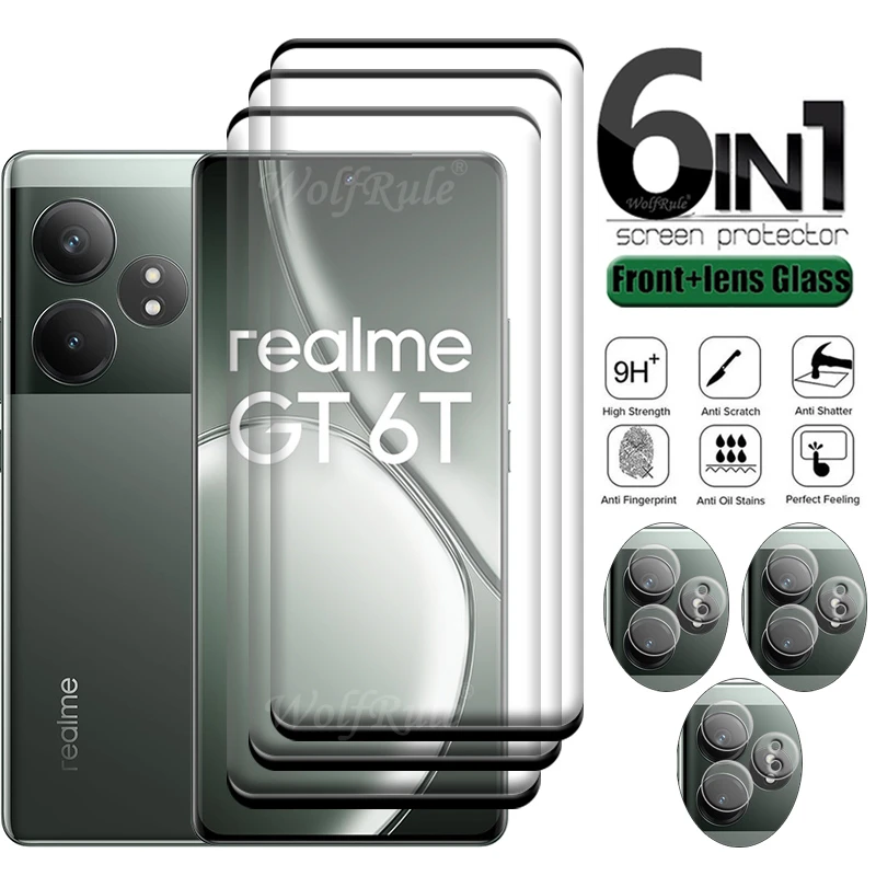 Comprar Protector de pantalla de vidrio templado 6 en 1 para Realme GT 6 T OPPO Realme GT 6 T 6 T, cubierta completa curvada 9H, Realme GT 6 T