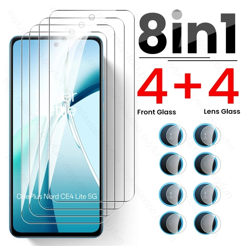 Protector de pantalla de vidrio templado 8 en 1 para OnePlus Nord CE4 Lite 5G vidrio protector de cámara en One Plus NordCE 4 Lite 4 Light 5G