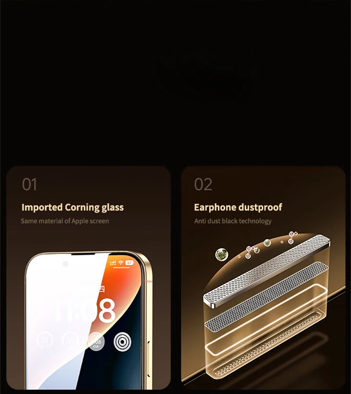 -El recubrimiento hidrofóbico y OLEOFÓBICO evita que su teléfono tenga manchas como aceite, huellas dactilares, etc.
