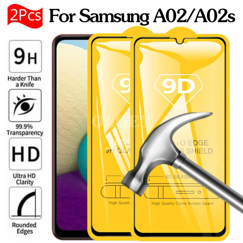 2 uds 9D protector de pantalla de cubierta completa para Samsung Galaxy A02 Protector de pantalla de vidrio templado en Samsun Galaxi A02 A 02 02 S película 2 uds.