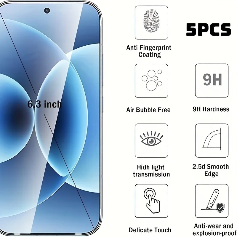 Protector de pantalla de vidrio templado 9H de cobertura completa de 5 uds para Xiaomi 17 Pro Max 15 14 13 Pro 12T 11T Pro Glass