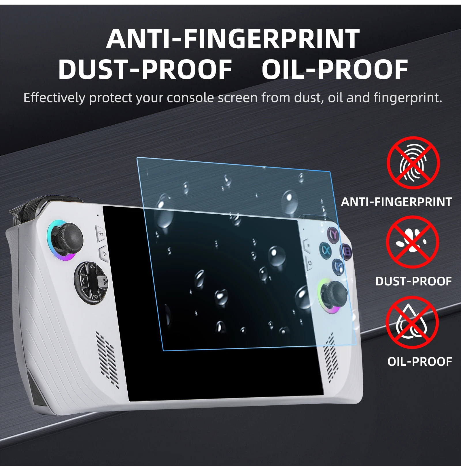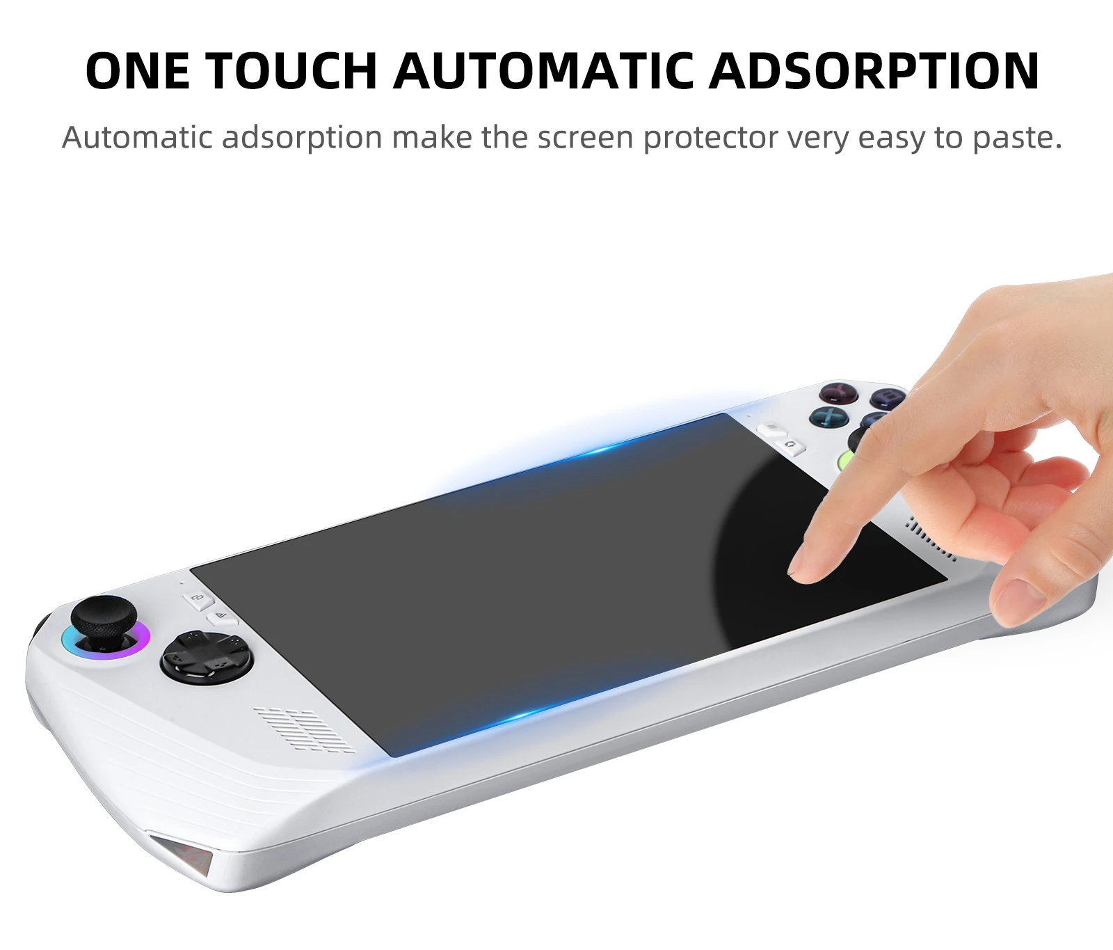 Excelente sensación al tacto: la película templada de pantalla para Rog Ally está confeccionada con un borde redondeado 2.5D, que no te rayará los dedos.y el protector de pantalla de vidrio templado también tiene una capa oleofóbica, que es resistente a las huellas dactilares y al aceite, manteniendo la pantalla de su juego siempre limpia, suave y con un aspecto nuevo.