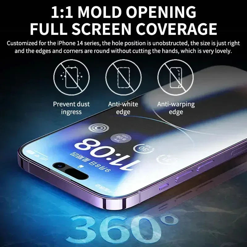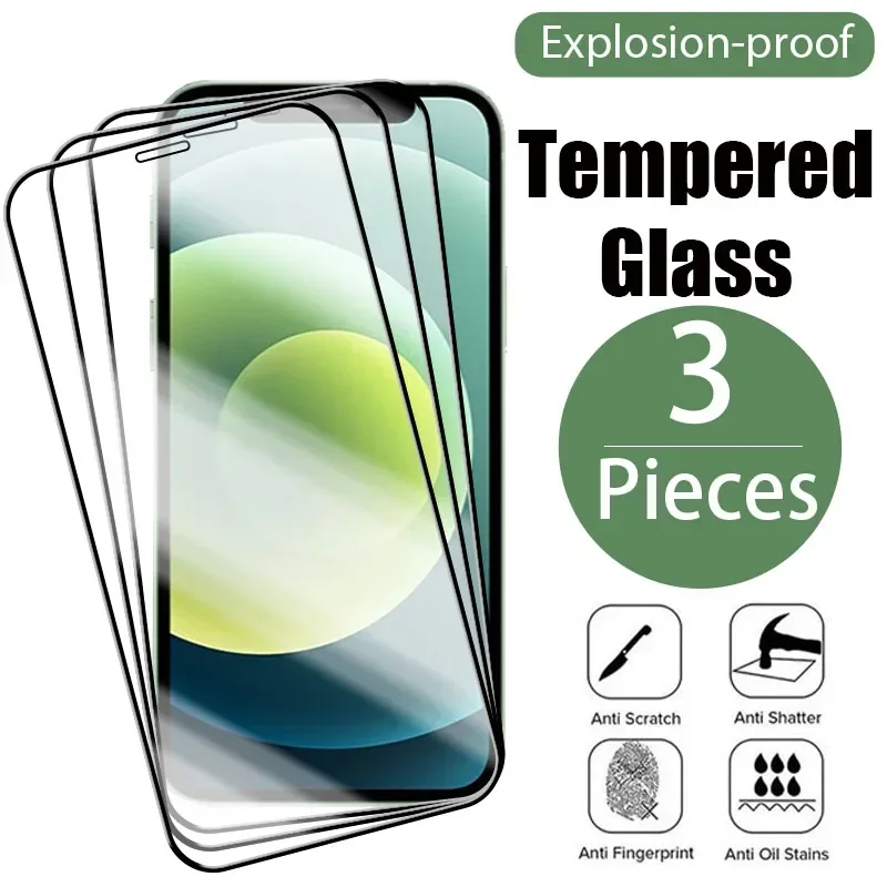 Comprar Protector de pantalla de vidrio templado de cubierta completa de 3 uds para iPhone 16 15 14 Pro Max vidrio de protección para iPhone 13 12 11 Pro Max