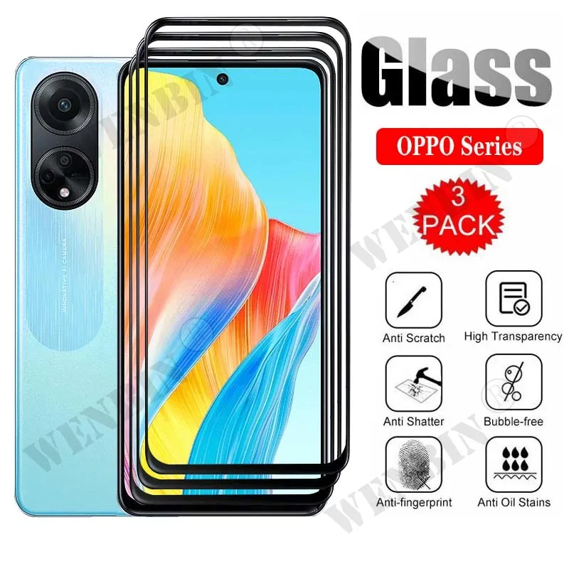 Protector de pantalla de vidrio templado curvo para OPPO A79, A98, A18, A58, Find, X7, Ultra, X6, X5 Pro, Reno 11, 10, 9 Pro Plus, 3 piezas