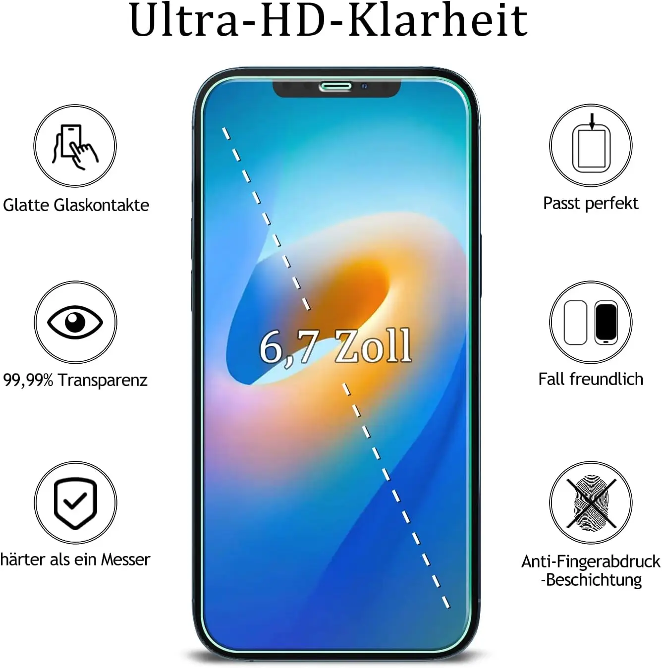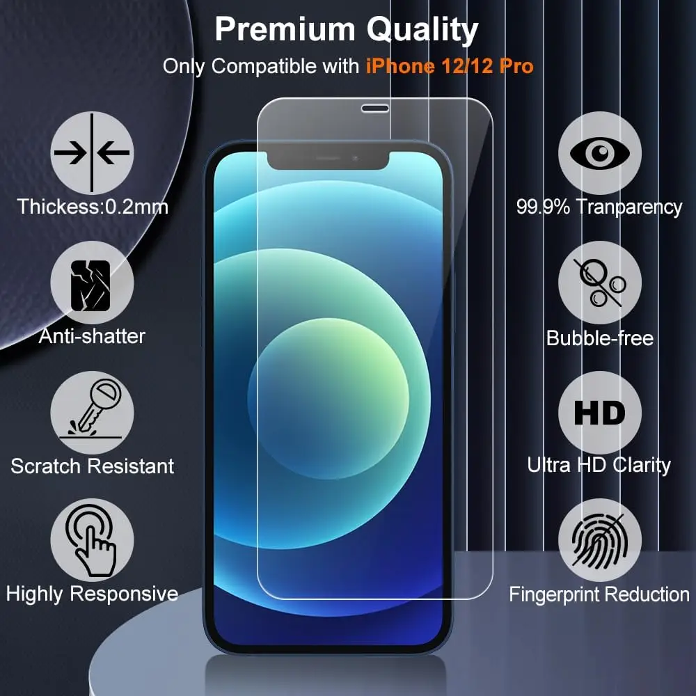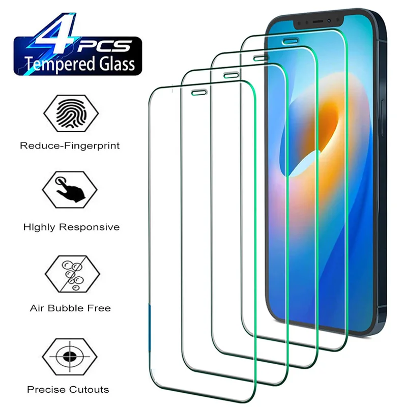 Comprar Protector de pantalla de vidrio templado HD para iPhone, 15, 14, 13, 12, 11 Pro Max, 12 Mini, 14, 15 Plus, XS Max, XR, 4 unidades