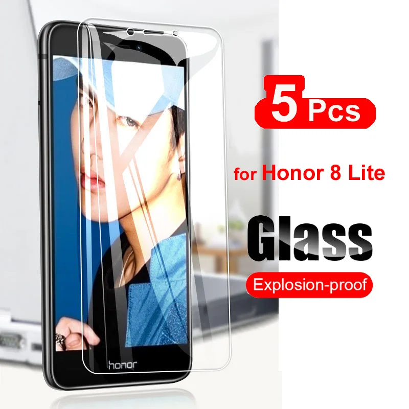 5 uds para Huawei Honor 8 Lite Protector de pantalla de vidrio templado para Huawei P8 P9 Lite 2017 película de teléfono de vidrio 9H P8 Lite 2017