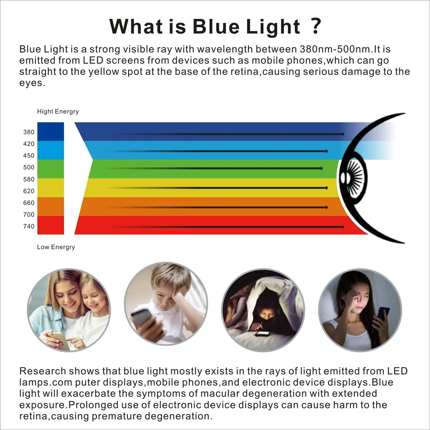 effectively filter blue light with a wavelength of 400NM-480NM to keep you away from visual damage