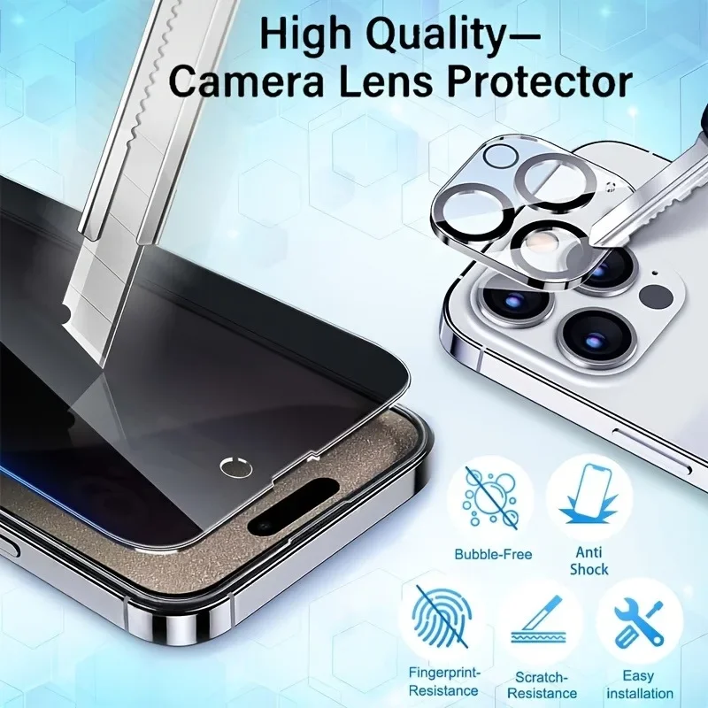 Protector de pantalla de vidrio templado para iPhone 11 12 13 Pro Mini 14 15 16 17 Pro Max 14 15 16Plus 17Air con película de lente de cámara