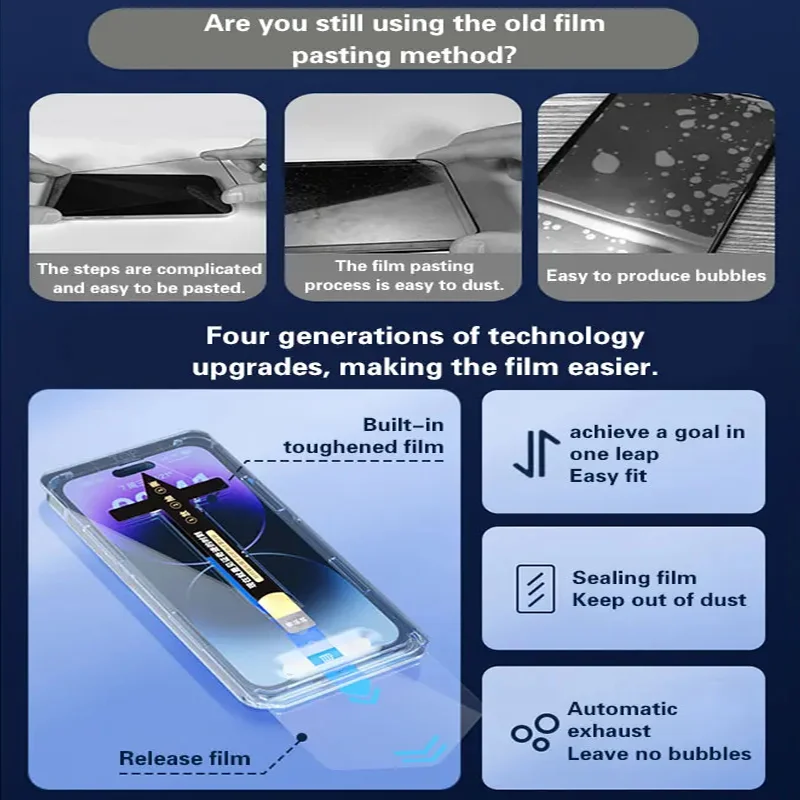 Comprar Protector de pantalla de vidrio templado para iPhone 15 13 14 12 11 Pro Max, iPhone 15 14 Pro Plus, Kit de instalación automática de eliminación de polvo, 2 uds.