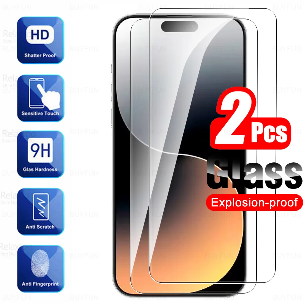 2 uds para iPhone 15 Pro Max Protector de pantalla de vidrio templado i Phone 14 13 12 Mini 11 Pro XR X XS Max 7 8 6 6S 7S 8s Plus SE Glass