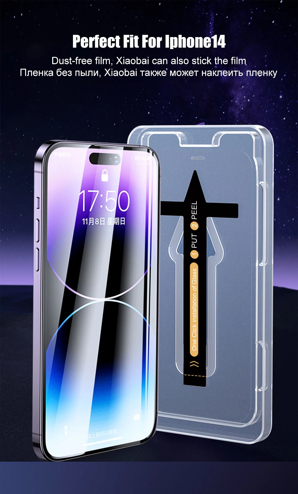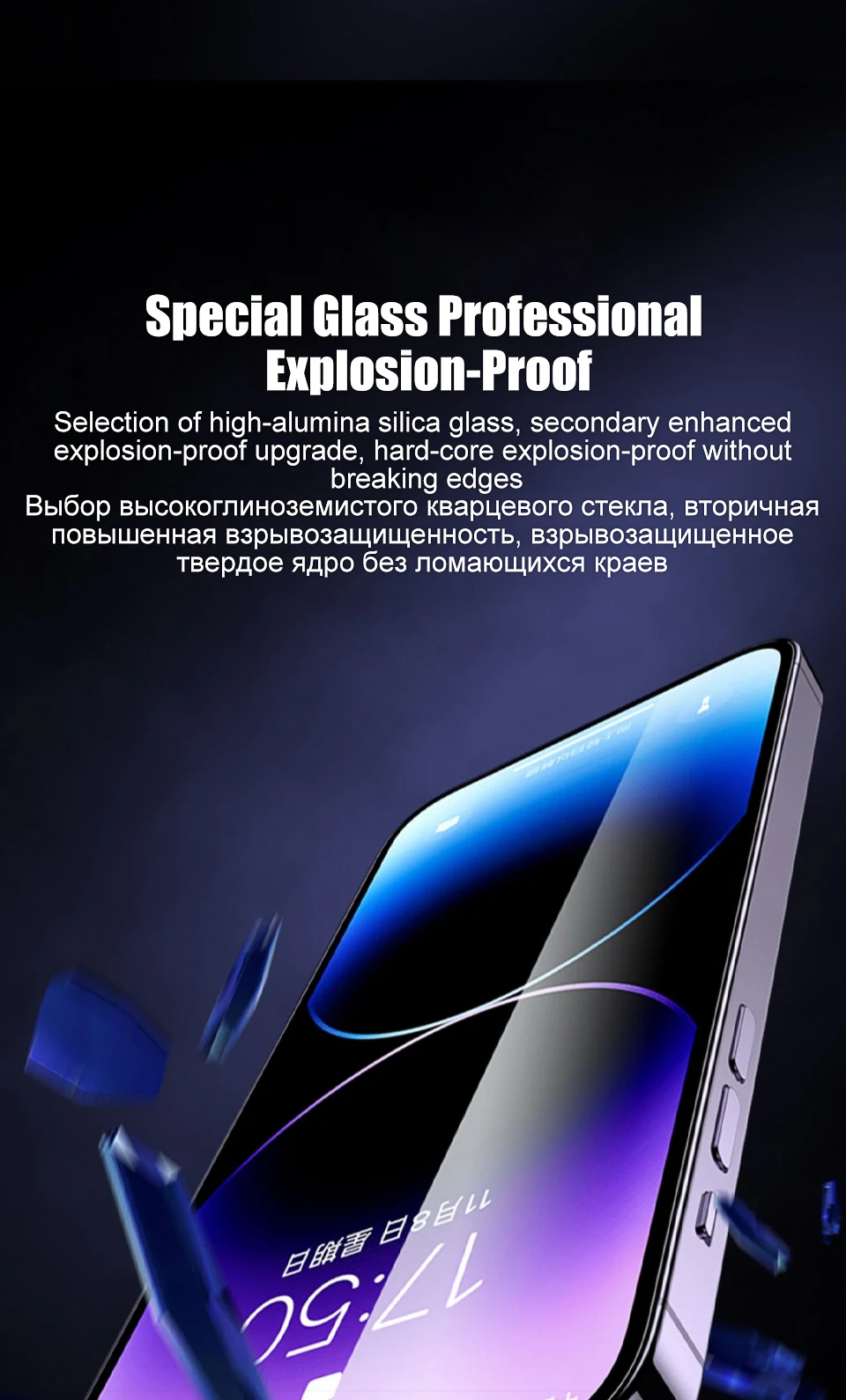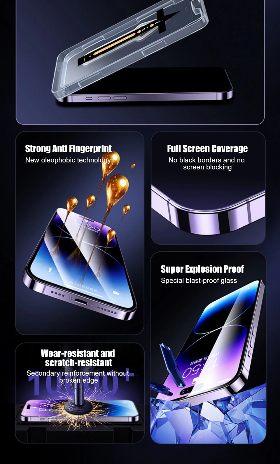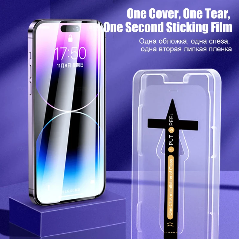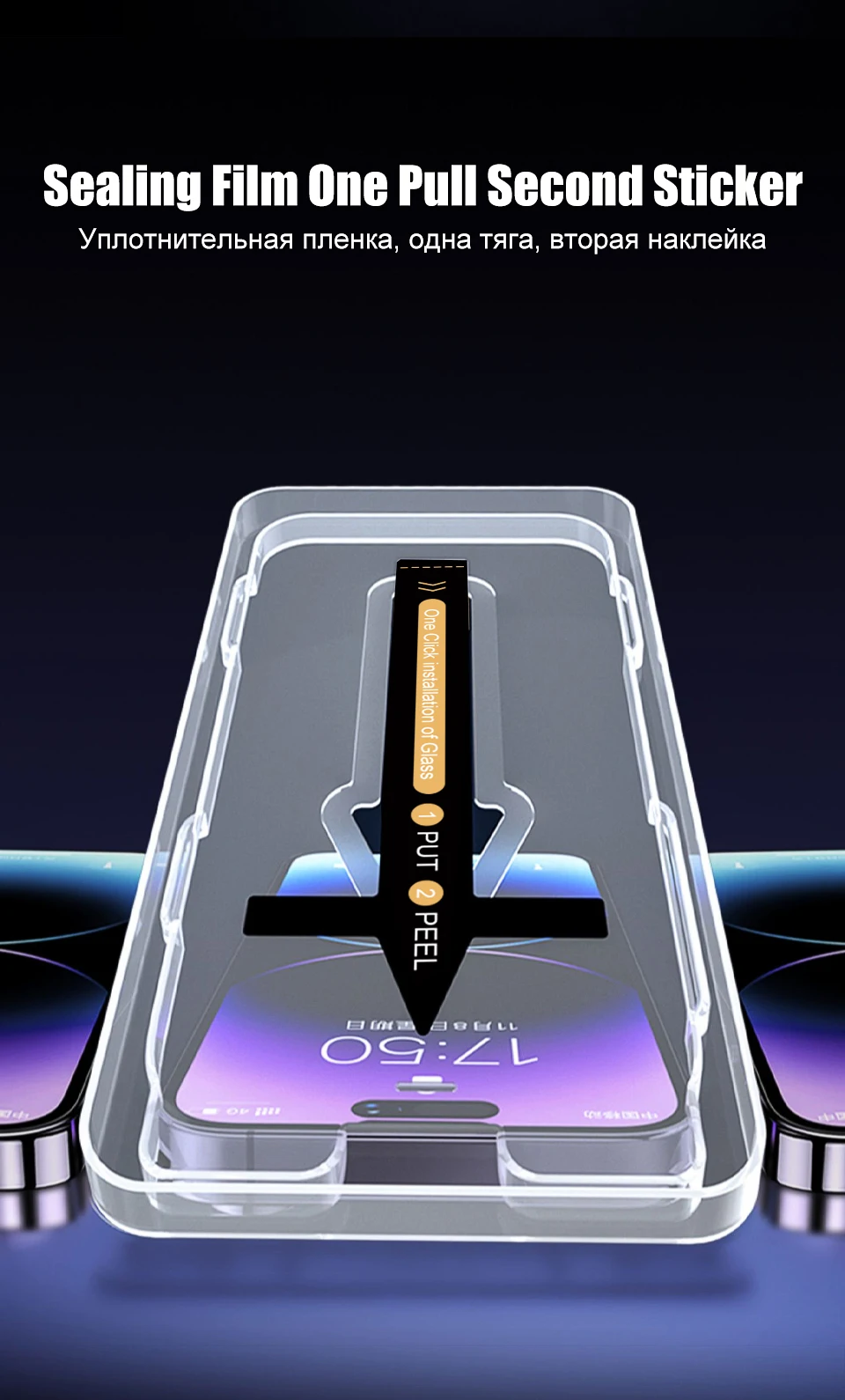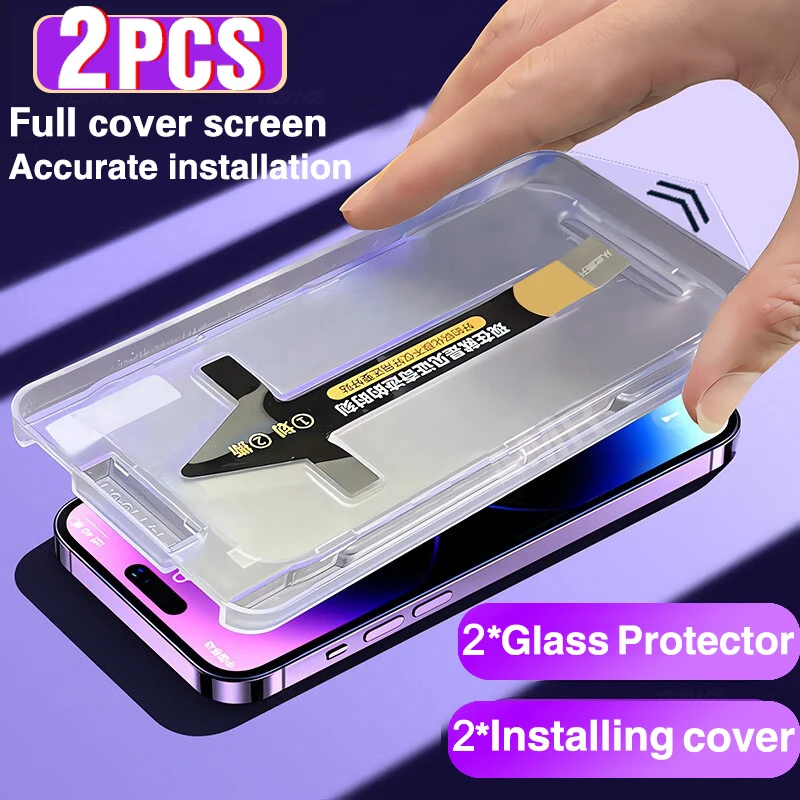 Comprar Protector de pantalla de vidrio templado para iPhone, Caja libre de polvo, transparente, HD, 9H, 15, 14 Plus, 13, 12 mini, 11 Pro, XS Max, X, XR, 2 unidades