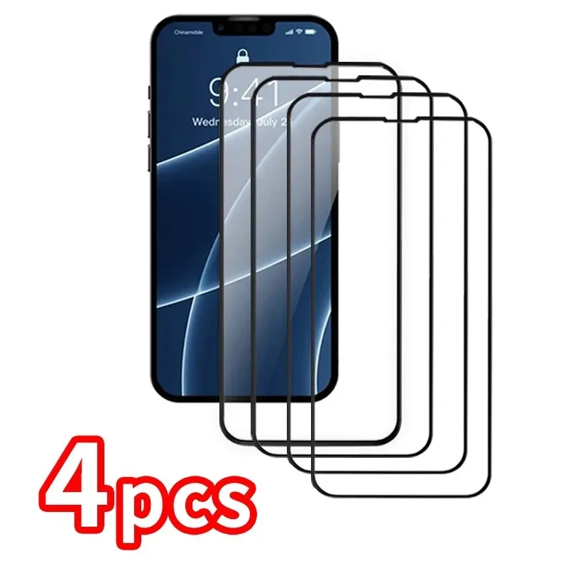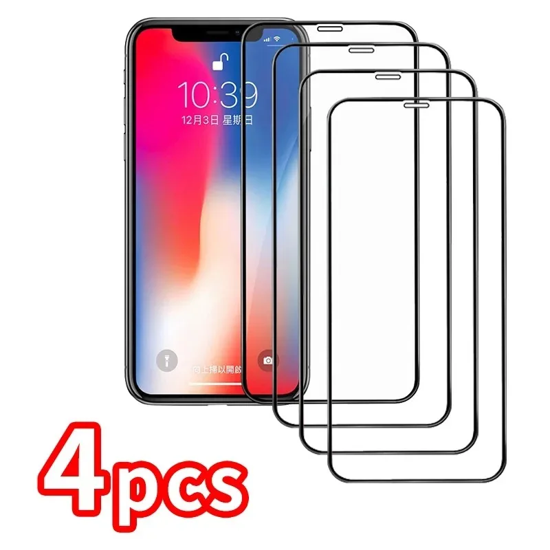 Protector de pantalla de vidrio templado para iPhone, cubierta completa HD para IPhone 11 Pro, 12, 13 Mini, 14 Pro Max, XR, XS Max, 7, 8Plus, 4 unidades