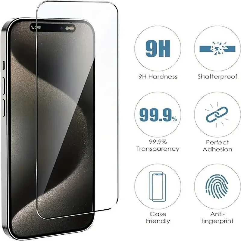 Comprar Protector de pantalla de vidrio templado para iPhone, película protectora de vidrio para iPhone 16 Pro Max 16 Plus Pro Max, 3-5 piezas