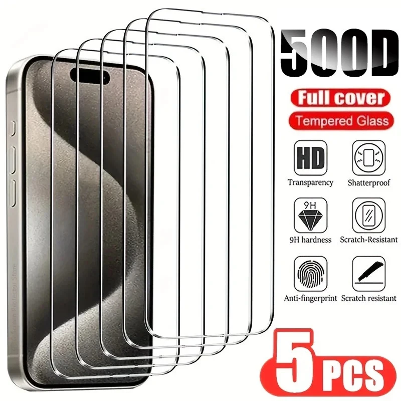 Protector de pantalla de vidrio templado para iPhone, Protector de pantalla HD para iPhone 14, 11, 12, 13, 15 Pro Max Mini, XR, X, XS MAX, 7, 8 Plus, 5 unidades