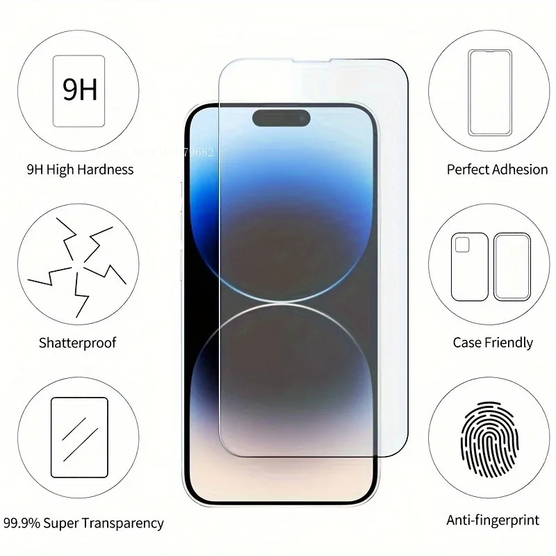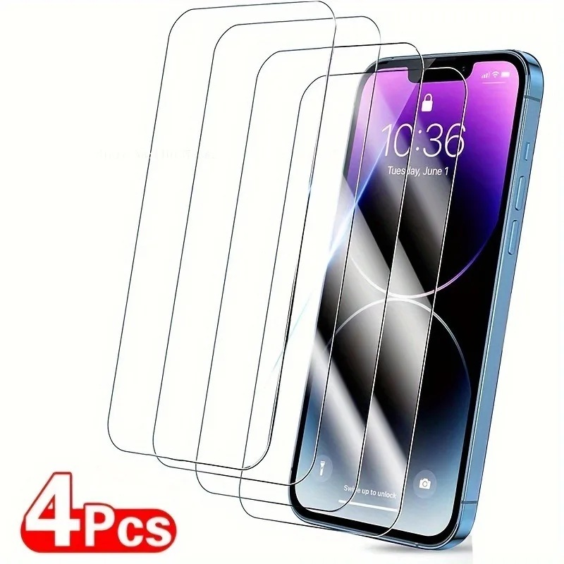 Comprar Protector de pantalla de vidrio templado para iPhone, vidrio para IPhone 16, 15, 14 Pro Max, 11, 12, 13 Pro Mini, 6, 7, 8Plus, XR, XS, 4 unidades