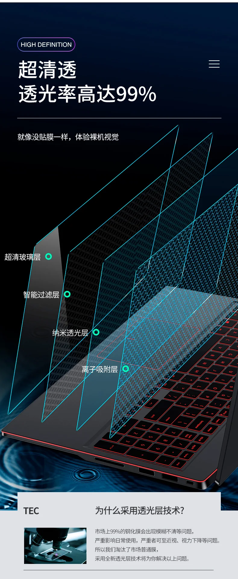 Características:* Antideslumbrante: superfino, Ópticamente claro, 100% antideslumbrante y huella dactilar.* Pruebas extremas: cuando hay baja temperatura de-30 °C y alta temperatura de 80 °C, el producto nunca cambia, incluso con mal tiempo.* Material ARM: material de cristal líquido ARM de cuarta generación, 100% de los materiales importados de Japón, producido a través de procesos totalmente mecánicos japoneses sin polvo, alta transparencia sin puntos pequeños para garantizar la pantalla clara perfecta.* Interceptación de rayos ultravioleta: para reducir la imprecisión de la pantalla LCD bajo luz fuerte y reducir el daño UV a la pantalla LCD, para que su pantalla sea nueva para siempre.* Recubrimiento óptico de doble efecto: Recubrimiento AG (para tratar los mareos) y recubrimiento HD (para mejorar el brillo) para eliminar la fatiga ocular y proteger sus ojos.* 99% de transmisión de súper luz: La tecnología única de procesamiento de luz para aumentar la restauración de la pantalla de cristal líquido al color original, para que la pantalla sea más hermosa y clara.* Dureza de súper recubrimiento de desgaste 5H: la dureza de la superficie a través de un procesamiento de dureza único de hasta 5H, y puede ser resistente al desgaste y a los arañazos, para que su pantalla sea nueva para siempre.* Deshágase de la radiación y las ondas electromagnéticas: el aislamiento de ondas electromagnéticas es de hasta más del 99,7% para ayudarlo a reducir la contaminación de la fuente de radiación, para que pueda disfrutar de una visión cómoda, natural y saludable.