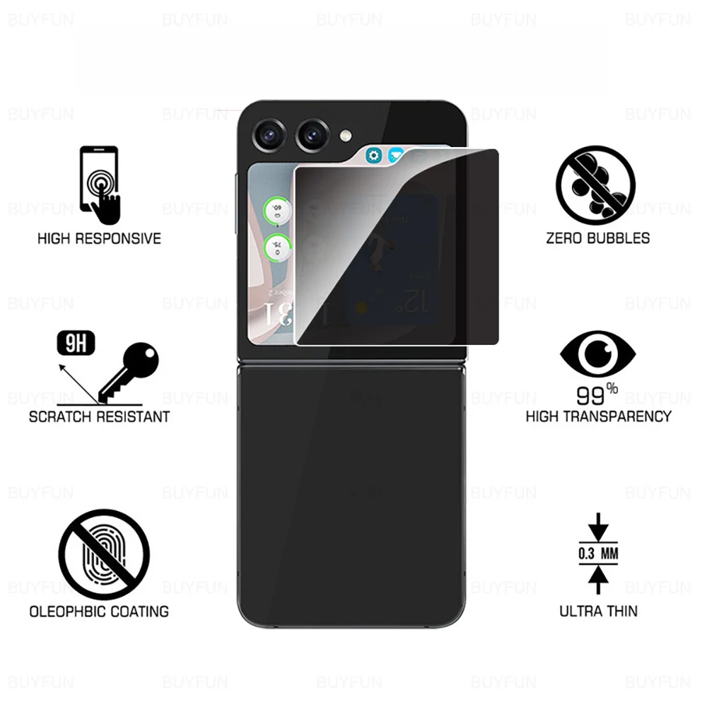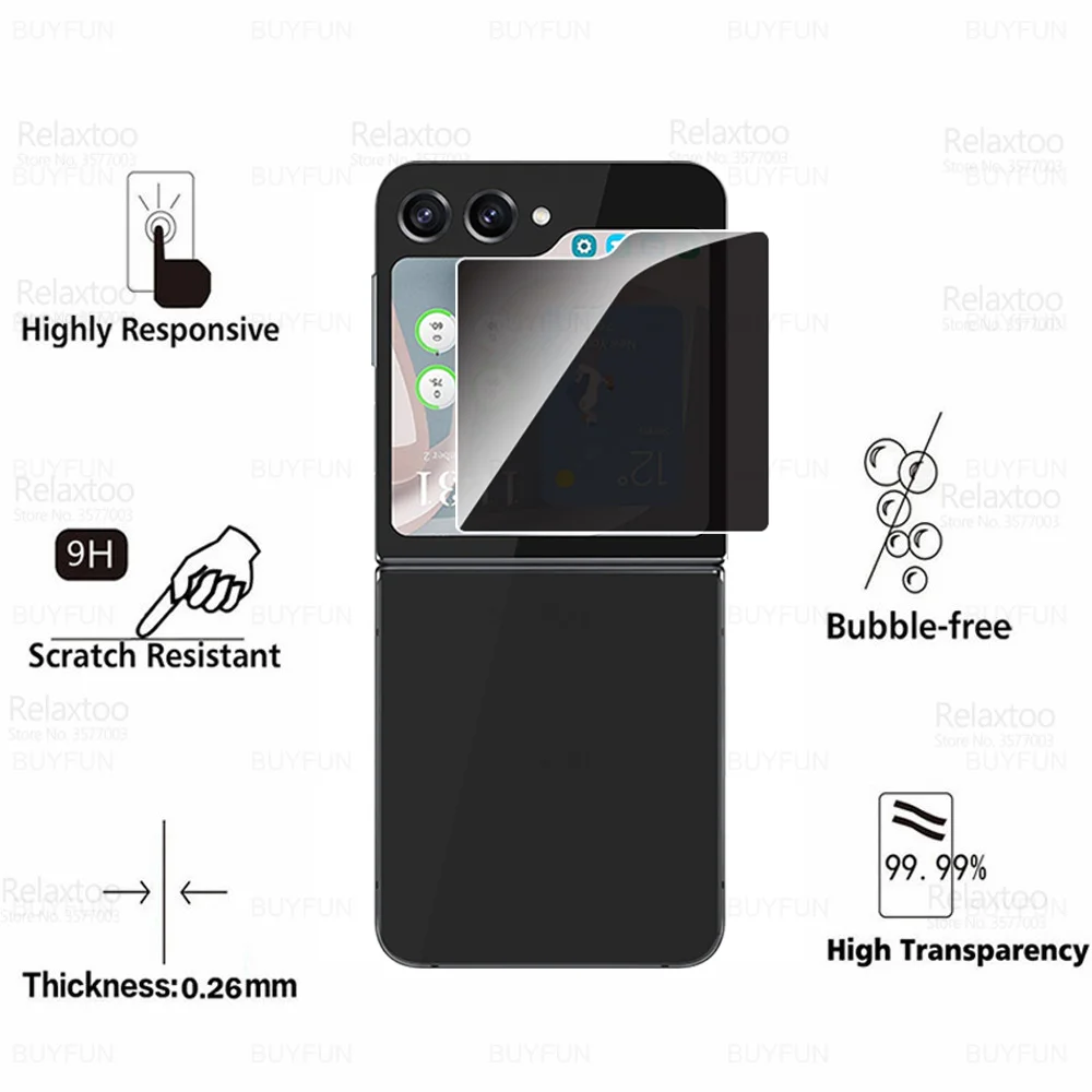 3 uds cubierta trasera de privacidad vidrio templado para Samsung Galaxy Z Flip5 vidrio protector Samung ZFlip5 Flip 5 ZFlip 5 Protector de pantalla