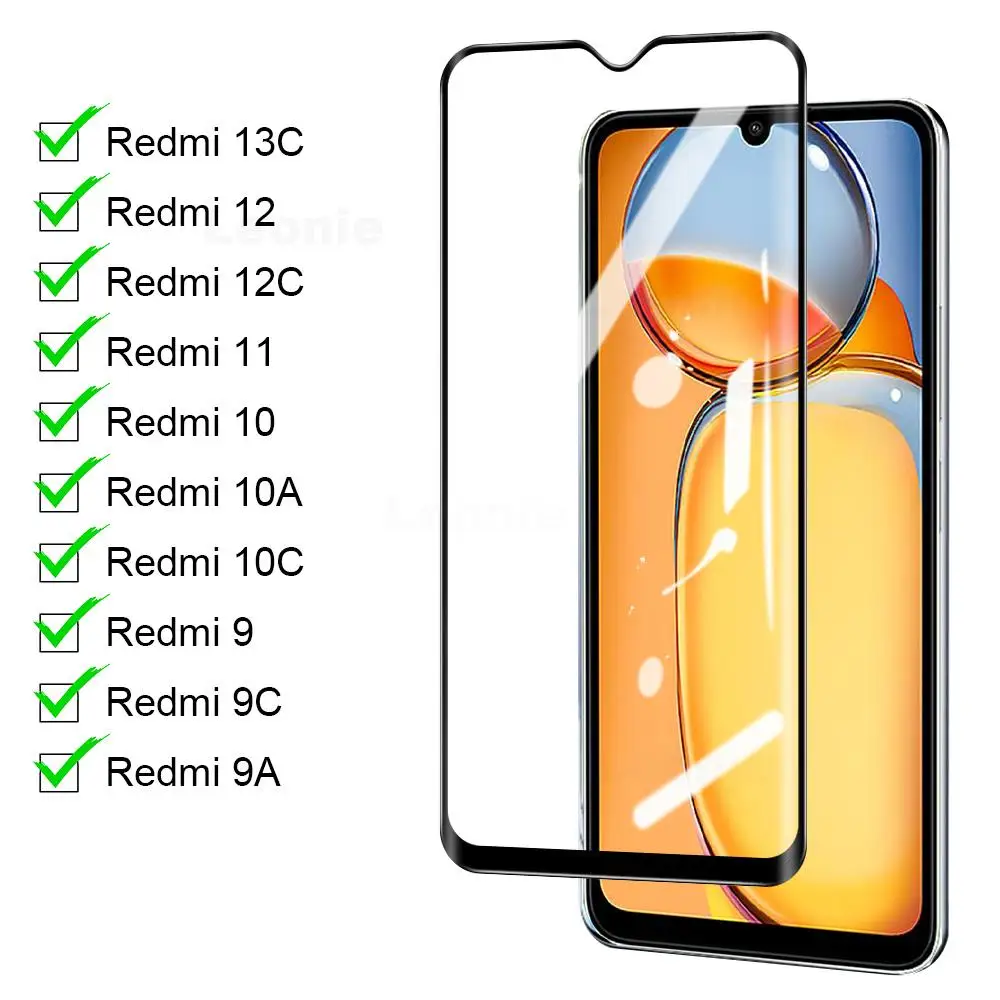Protector de pantalla completa para Xiaomi Redmi 13C 12 12C 11 10 10A 10C 9 9A 9C protector de pantalla de vidrio templado película frontal sensible