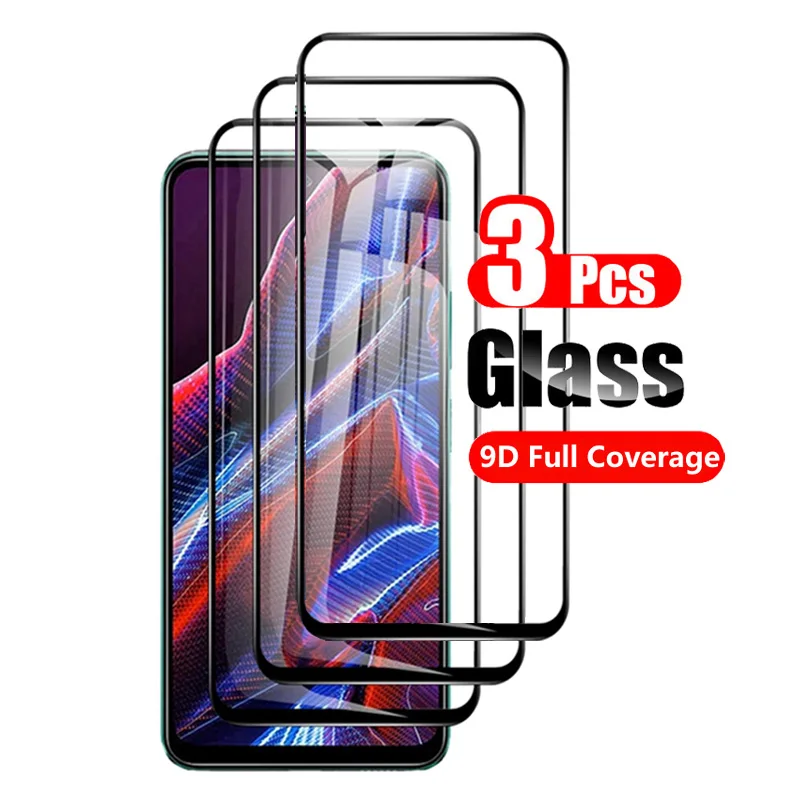 Paquete de 3 para Xiaomi Poco X5 X4 X3 NFC X2 M4 M3 Pro 5G C50 C40 C3 F3 GT Protector de pantalla templado vidrio cobertura completa vidrio negro