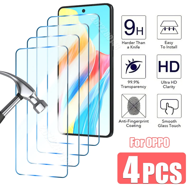 Comprar Protector de pantalla de vidrio templado para OPPO, 4 piezas, A74, 5G, A54, A52, A72, A53, A9, A5, 2020