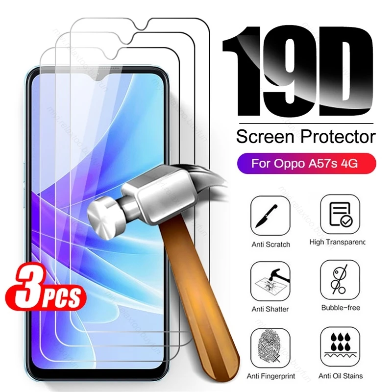 3 uds Protector de pantalla de cubierta completa de vidrio templado para Oppo A57 A57s A 57 s 57 S 4G 5G 2022 6,56 "cubierta protectora de película protectora de teléfono