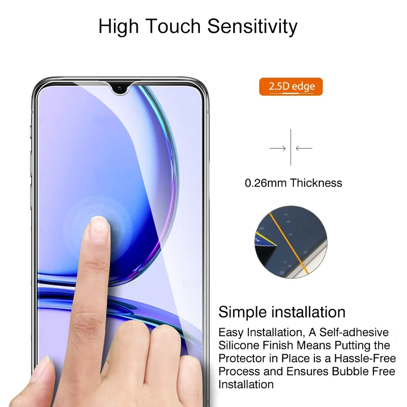 Comprar Protector de pantalla de vidrio templado para Oppo piezas C53, película protectora 9H, antiarañazos, transparente, 3 Realme