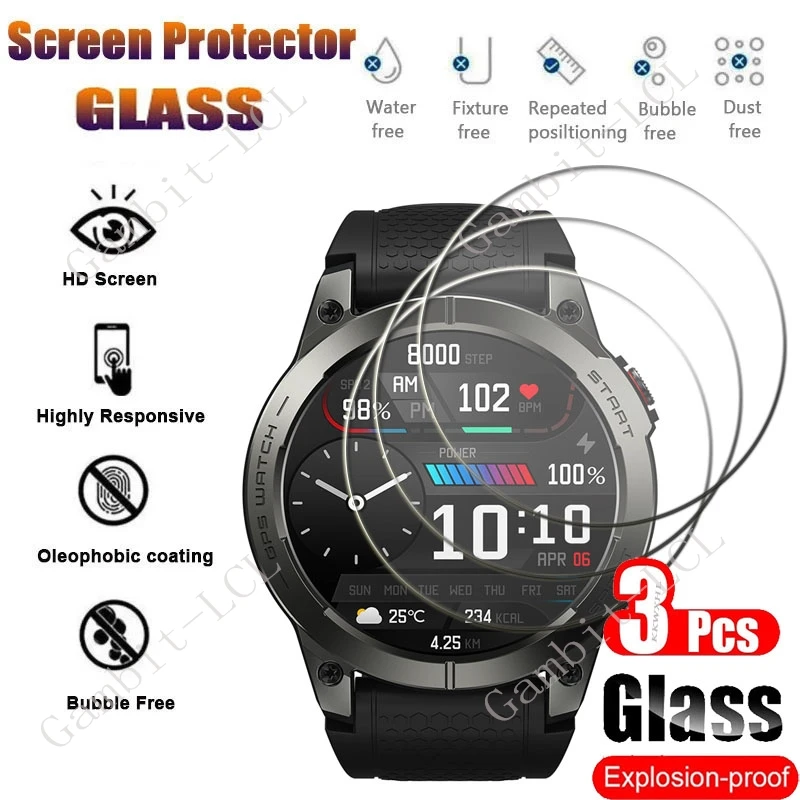 Comprar Protector de pantalla de vidrio templado para reloj inteligente Zeblaze Stratos 3, pantalla de 1,43 pulgadas, 9H, GPS, película de cubierta, 3 piezas