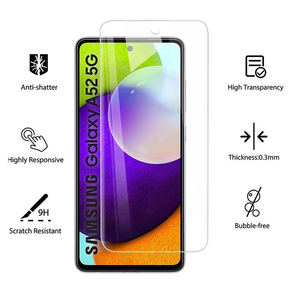 3 uds para Samsung Galaxy A52 Protector de pantalla de vidrio templado para Samsung Galaxy A52 5G Protector de pantalla de vidrio 9H transparente