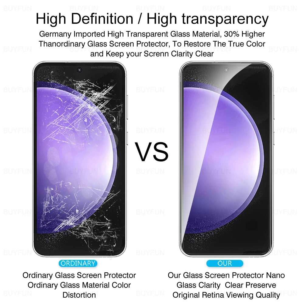 Comprar Protector de pantalla de vidrio templado para Samsung Galaxy S23 FE 5G, 4 en 1, película de cubierta de armadura, cámara SamsungS23FE S23FE S 23 F E 23FE