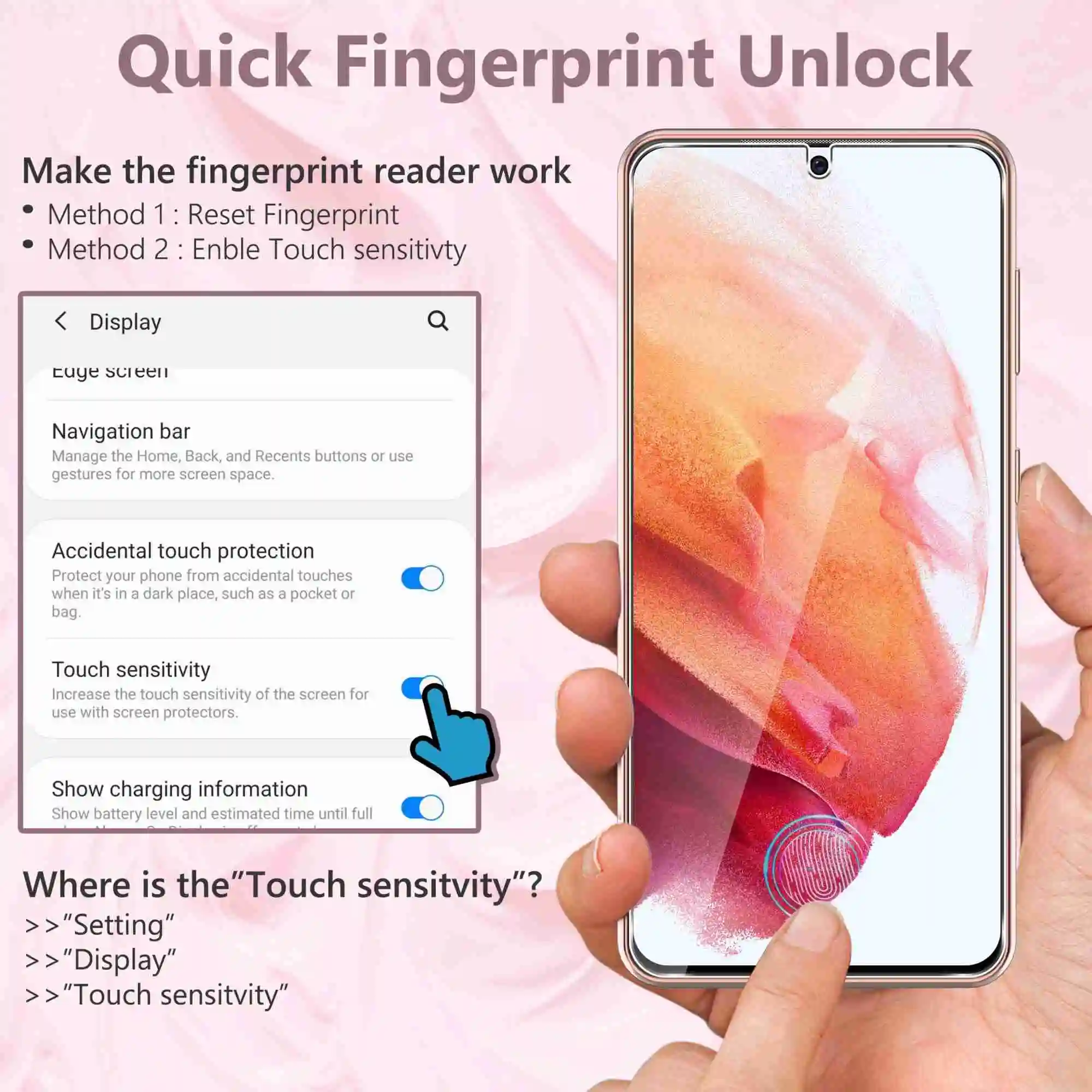 Por favor, restablezca la función de identificación de huellas dactilares después de instalar el protector de pantalla. Y tenga en cuenta que duda. Limpie la pantalla de su teléfono sin polvo antes de la instalación. Lo mejor es que el teléfono grabe huellas dactilares planas será mejor para la identificación de huellas dactilares.
