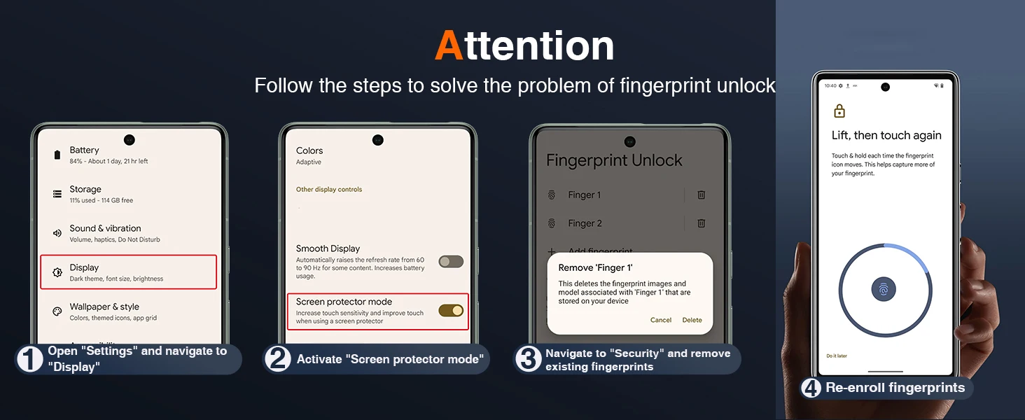 Encaja perfectamente. Recibido rápidamente y bien protegido. El reconocimiento de huellas dactilares funciona a la perfección.